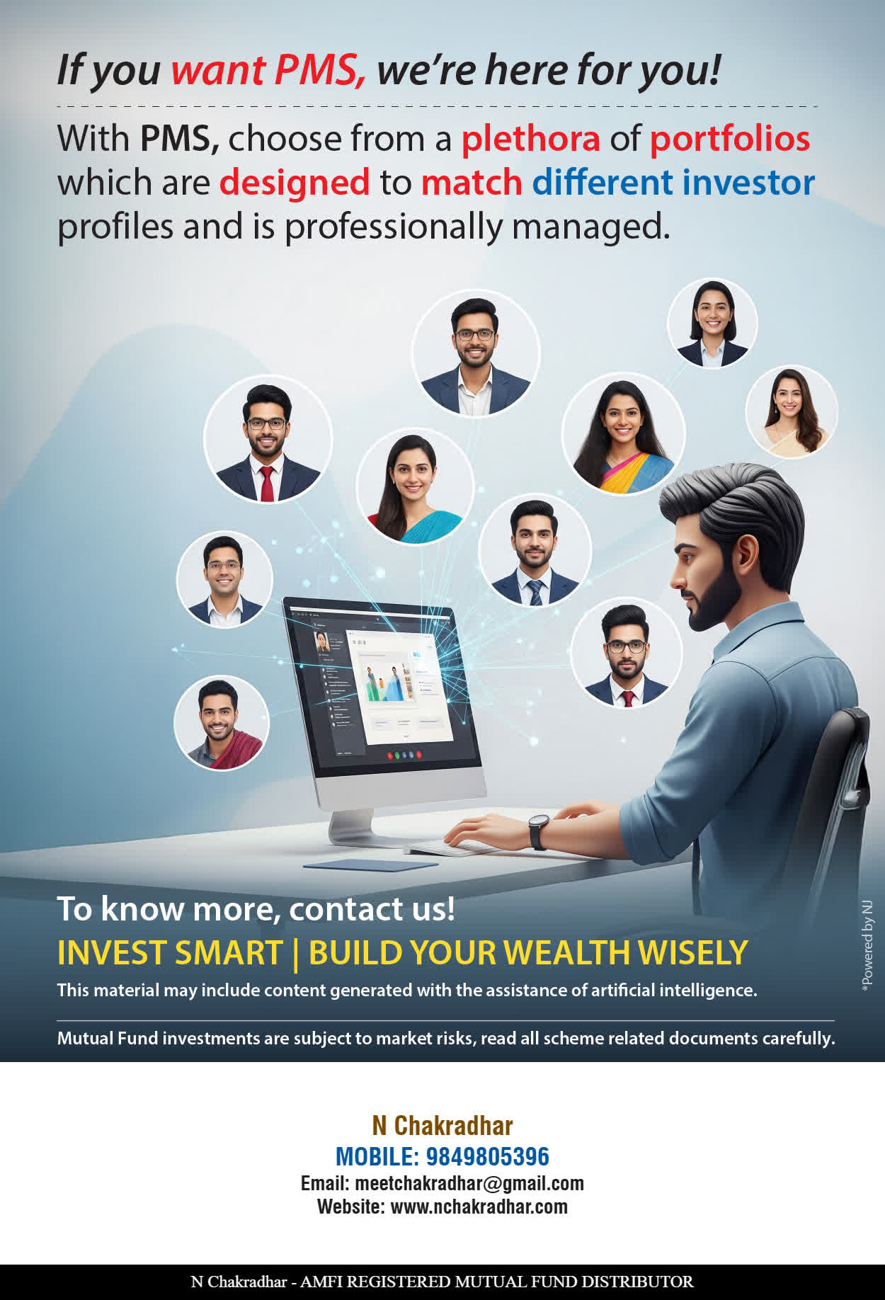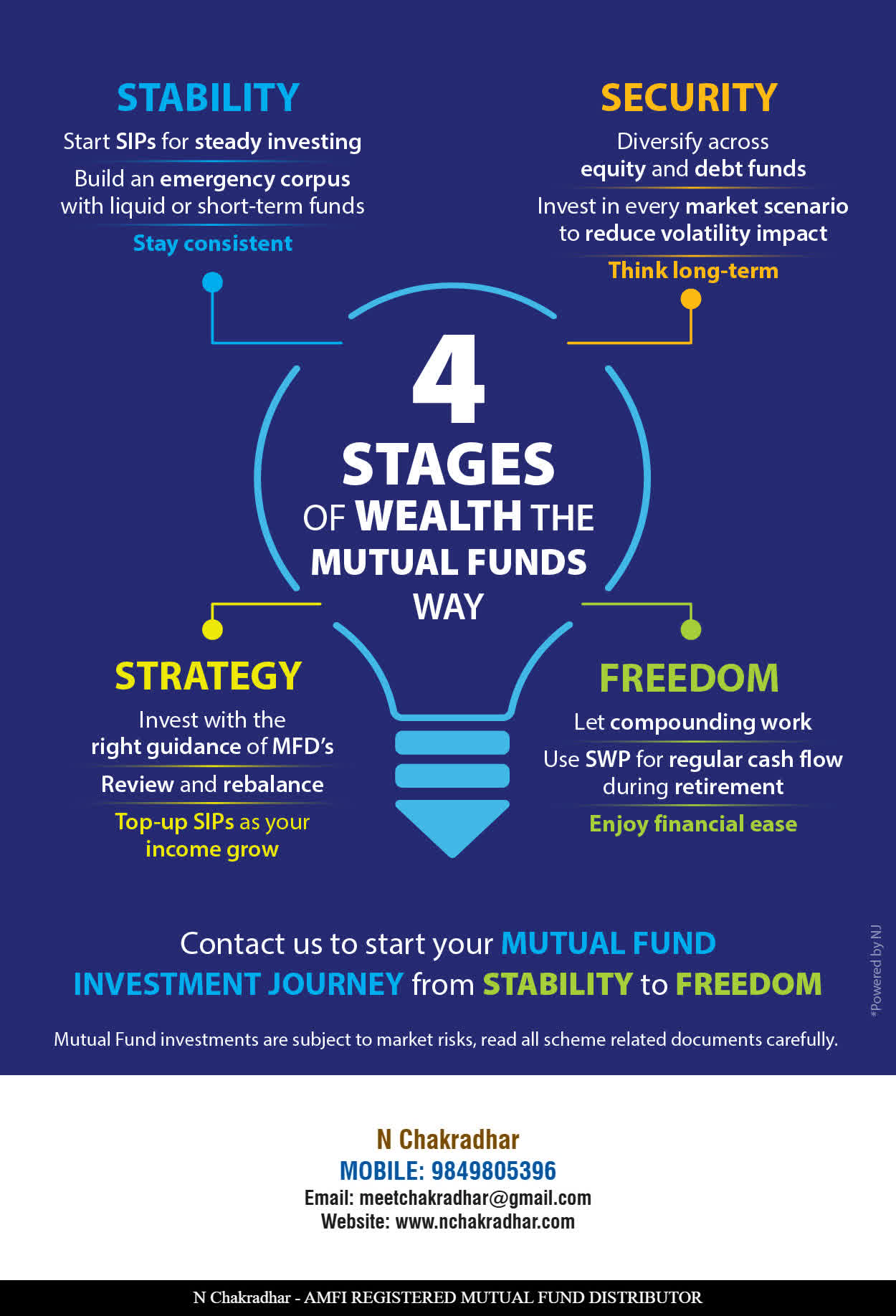 At, WEALTHY CHAKRADHAR our mission is to provide our clients with the best solutions in wealth building. We are driven to provide clients with simple, unbiased and uncluttered guidance that adds value to their quality of life and results in actionable solutions.